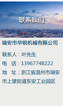 瑞安市華銳機械有限公司的誠信、實力和產(chǎn)品質(zhì)量獲得業(yè)界的認可。歡迎各界朋友蒞臨參觀、指導(dǎo)和業(yè)務(wù)洽談......【查看詳情】